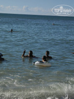 Отдельно хочу сказать про размещение. Отдыхали в четвёртом корпусе на втором этаже. Окна выходили на какое-то непонятное хозяйственное строение. Дальше был забор, за забором дорога и местная речка. То есть вид из окна был не айс. Плюс рядом располагался мангал. И часто доходил запах шашлыков. В принципе, не было шума. Отдыхать было комфортно. Комната была большая. Мне понравилось. Одна комната разместились у наших двух детей. Одна комната для нас. Между ними располагался зал туалет. Но номер уставший. Все старое, убирались более-менее сносно, через раз. Пора бы уже обновить. Гель душ не давали, надо было просить. Хорошо, с собой взяли, проблем у нас в этом плане не было. А как люди просили или давали? Люди просили, и им давали гель и душ. Что ещё хотелось бы отметить? Территория большая, огороженная, внутри можно было погулять, народу было много. Был бассейн с горками, но вода в нём была прохладная. Касательно лежаков для бассейна. Многие лежаки занимались с утра, место было найти трудно. После обеда уже там можно было найти. Но бассейн был холодный уже в октябре. Он подогревался, отдыхать в нём было неинтересно. Детский клуб — дети занимались. У нас дочка с удовольствием начала ходить в детский клуб, нашла там друзей. Здесь претензий нет.