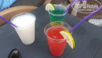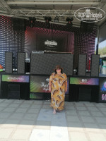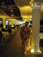 Насмотревшись фотографий в интернете об этом отеле, мы решили и в день моего рождения посетили аля-карт ресторан море продуктов, который расположен на открытой площадке ресторана возле пляжа. Столик нам достался у стенки с висячим рядом огнетушителем. Мы пришли вовремя, но за стол нас посадили не сразу. На столе уже стояло четыре пиалки, в каждой ровно по две ложки потекших салатов с крабовыми палочками. Затем нам подали каждому, в отдельной пиалке, рыбный суп. Музыки не было, посуда жуткая, через стол (у нас не было) на столах стоял пластиковый, повидавший виды, электрический подсвечник на батарейках - вот и все оформление. И "вишенкой на торте" было личное обслуживание администратора "ресторана", когда он, подходя к каждому столику, трясущейся рукой, с помощью щипцов, ложил каждому на тарелку по два колечка кальмара, жаренного во фритюре. Настроение было испорчено. Захотелось этого администратора покормить настоящими деликатесами морской кухни. Мы, как и многие посетители, на этом ушли в ресторан, где еще шел ужин.