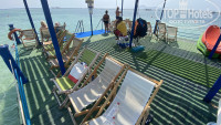 Море прекрасное, но мелкое и при отливе сильно вода уходит от линии прибоя. Можно прогуляться по пантону и покупаться на относительной глубине.