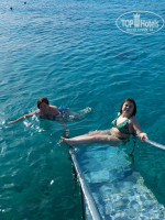 Пляж -это отдельная песня! Просто класс!!! Вход в море прекрасный. Я купалась с пантона. Там очень удобные лесенки. С погодой нам повезло, ветра не было, вода тёплая. Лежаков всем хватало, но мы в 7.00 занимали наши любимые лежаки и шли завтракать, а потом сразу на море!
