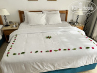 Добрый день. В отеле второй раз, были в прошлом году. Прилетели рано утром, сразу надели браслеты, предложили позавтракать и пообещали номер дать к 10 часам. После завтрака переоделись (пляжное было заранее заготовлено) и пошли на пляж. Около 10 часов на рецепшен предложили номер у большого бассейна в двухэтожном корпусе, но он нам не подошел, так как хотели жить в бугнало, с выходом на лужайку, как в прошлом году. Сотрудникам отеля наш отказ не очень понравился, сказали тогда приходите к 14-00. После обеда нам предоставили другой номер, рядом с детским клубом, там сейчас идет стройка, днем очень шумно. В предложенный номер мы сначала заселились, но спустя час поняли, что находится в нем невозможно- очень шумно и когда выходишть из номера летят искры от сварки, мне даже испортили футболку. В итоге, после очередного обращения, нам все таки дали хороший номер, причем без доплаты. Бунгало находится на окраине отеля, рядом сад-огород), номер с выходом на лужайку и небольшой бассейн с лежаками. Нам все понравилось, но впечатление от отдыха было немного испорчено, так как заселение затянулось почти до вечера.