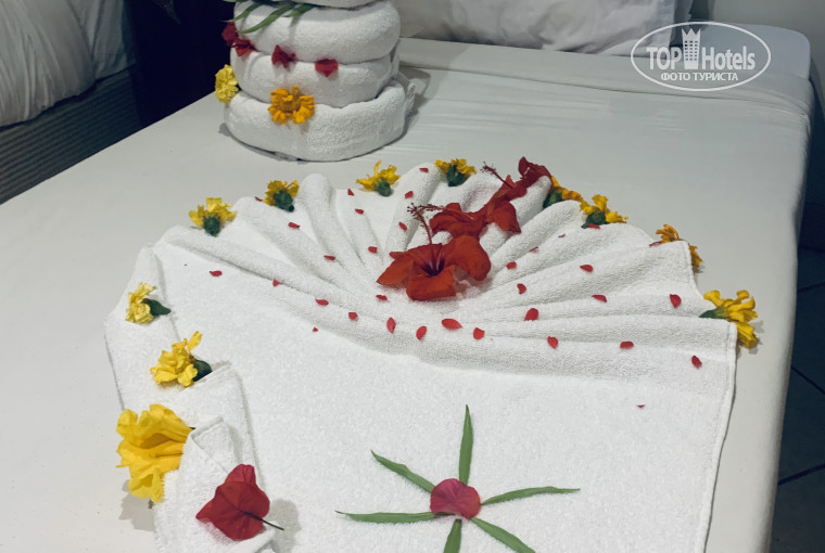 Номер дали хороший . Уборка в номере надлежащая. Постоянно из полотенец крутили дочке всякие штуки Cleaner - A del Fatah. Уборка номера у нас чаще была по просьбе. А так ежедневно там номера дрючат . По ТВ -2 русских канала ТНТ и еще какой-то. Полотенца для моря и бассейна выдавали ежедневно. Утюг на рецепшене новый. В баре всегда улыбаются ребята Barman Ahmed & Mohamed и предлагают напитки; Повара ресторана тоже старались всего много и вкусно готовили.