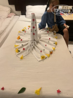 Все было на высоком уровне, с красивой подачей, вкусно и много всего . Рыба, мясо, салаты, гриль , рис, паста, лазанья, яйца, пицца, выпечка, бобовые, фрукты яблоки бананы физалис гранаты апельсины мандарины лимоны, алкоголь, напитки. Все накормлены. Менеджеры зала ресторана всегда встречали гостей и были очень активными и приветливыми. Быстро убирали грязные тарелки , накрывали шустро. Запомнился отзывчивый Hali в ресторане.