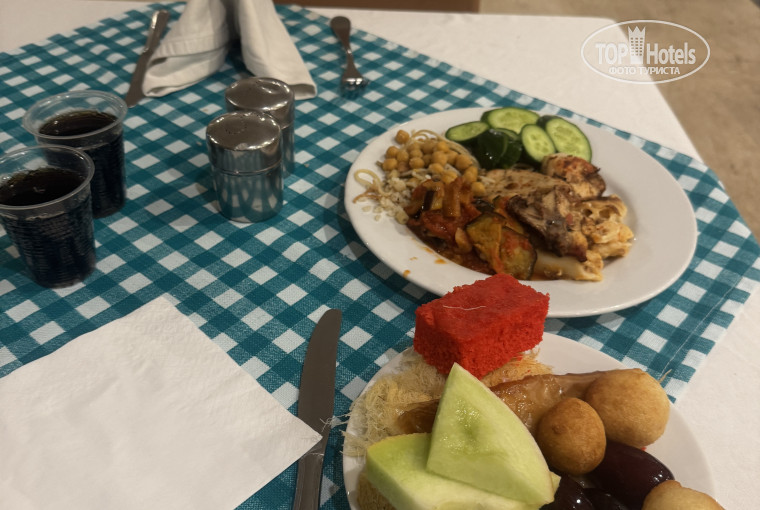 Еда, ресторан, бары. Меня все более чем устроило. Хотя для кого то возможно будет бедноватый выбор блюд, мало мяса. Завтраки примерно как и во всех отелях 4*. Обеды -был два раза за 11 дней. Не впечатлило, мяса вообще почти нет. Можно было два раза заказать пиццу вместо обеда возле бассейна. Я в обед был на море, поэтому эта опция мне не понадобилась. Алкоголь и напитки наливают в 125 г стаканчики. Берите с собой свои стаканы, в них наливают без проблем. Напитки как и везде в 4*. Кола/кола Лайт/фанта/спрайт с бутылок. Подобие сока -порошок с водой, но пить можно иногда. Чай, кофе- обычно все.