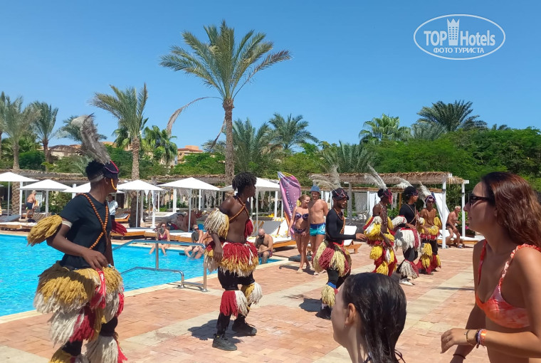 Пляж очень даже неплохой, поделен на 2 зоны, одна из которых релакс зона под пальмами, там больше тени и тишины, но и людей там почти нет. Лежаков с зонтиками очень много, находили в любое время. Заход в море в основном с пирса сразу на глубину, течение есть, но терпимо. С утра и до обеда всегда красный флаг. Это время мы проводили у бассейна. Море чистое, невероятно красивого цвета, вернее разного цвета, от голубого до темно-синего. Кораллы довольно приличные, рыб много, видела маленьких мурен, разных расцветок и размеров скатов, рыбу-камень, рыбу-зебру, а также любимых попугаев и наполеонов. Остальные рыбки: хирурги, бабочки, рыбы-игла, рыба-собака, как и везде на побережье Шарм-Эш-Шейха. Также, когда прилив, можно побарахтаться в море с берега, но лучше в кораллках, дабы не наступить на кого-то или что-то острое. На берегу всегда есть пластиковые лежаки, на которых можно плавать и загорать в море. Также несколько штук всегда есть в главном бассейне. Около пляжа есть бар с различными напитками и снеками, душ, туалет. Пункт выдачи полотенец находится по пути на пляж. Полотенца всегда были в наличии.