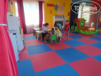 Детская площадка на пляже и у игровой без навеса, днём под палящим солнцем находиться было тяжело, качели нагревались.