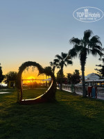 Территория: территория достаточно большая , мы остановились во втором корпусе , но это нас не огорчило , номер хороший, чистый , светлый . Территория зеленая , ухоженная , море рядом , только вот бассейн холодный , так ни разу и не искупалась . Для детей есть водные горки у второго корпуса .