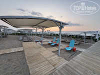6. Пляж. Пляж супер, заход в море отличный. Это большой плюс этого отеля. Есть разделение на курящих и некурящих, но туркам на это плевать. В некурящей зоне могли поставить вплотную свой лежак к вам и начать курить. Работники пляжа вообще за этим никак не следят. Впрочем, как и в любом отеле Турции. Сверху натянут тент, загорать комфортно. С пирса можно спуститься и плавать в лазурной воде. Естественно, все как мы любим: все хорошие места заняты полотенцами с раннего утра. Работники их не убирают.