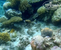 Море. Коралловый риф есть и красивые кораллы есть, но в основном они бледненькие, яркие такими "всплесками", а вот рыб очень много разных, ярких и не ярких, одиночных, стайных, приплывал скат очень красивый. У меня на фото мало рыб потому, что я снимала телефоном в мягком чехольчике под водой, сначала он снимал и видео и фото нормально, а потом сам что-то себе перестроил и всё смазанное стало. Покупайте лучше жесткий. Для любителей прыгать с вышки можно нырять с пирса. Есть ооооооочень длинный и оооочень мелководный вход в море. Для детей самое оно, а еще там пробуют свои силы сёрферы-чайники.