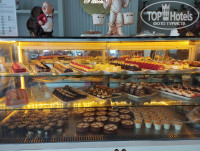 - В отеле два с половиной бара на все население. С половиной потому, что третий находится на самом солнцепеке около горок и закрывается то ли в 17, то ли в 18, да и находится на самых задворках. Остаются бар у пляжа-бассейна и в лобби. Как результат постоянные очереди, в которых стояли вместе поддатые взрослые, пышущие перегаром, и дети, этот перегар вдыхающие. Постоянно все заканчивалось: то сок, то кофе в кофемашинах, то еще что-то. Короче, просто беда. За стаканом томатного сока по пол-часа стоять приходилось. Зато в лобби есть очень милая кондитерская с пироженками и хорошим кофе. И там работают просто чудесные улыбчивые девочки. Это слегка примиряет с недостатками. Хотя... бар, заявленный работающим 24 часа... Короче, утром еще побегаете чтобы кофе получить - в кофемашине либо кофе, либо вода закончились, бармена с фонарями не найти.