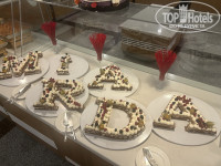 Еда - очень богатый выбор и очень хорошие повара, нам понравилось. Дыня для нас была идеальная (не приторно сладкая, сочная, и с вкусом дыни, а не сахара). Арбуз - просто хороший, но не такой что за уши не оторвать. Остальные фрукты вполне съедобные и даже какой-то ассортимент был, в других отелях с этим все гораздо хуже по нашему опыту. Кондитерка такая же вкусная, как и во всех отелях такого же 5* уровня.