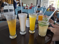 На завтрак 2 фреша: апельсиновый,дынный. Отлично делают коктейли. Еда вкусная и разнообразная. Только в этот раз не было снеков: орешков,попкорна . Раньше мороженое давали днём, в этот раз днем не видели,только вечером ели. Напитки приносят и в ресторане и у бассейна и на пляже. Фасфуд у аквапарка. На пляже только напитки,а раньше и еда была. Лежаков достаточно. Пляж ,где песок конечно маловат для 5 отелей. Есть 2 пирса. С одного сразу глубоко ( удлинили перила) можно посмотреть рыбок,второй мелкий и рыбок больше. На пляж возит автобус очень часто. Анимация днём и вечером . Более подробный отзыв от 2024 года. Обязательно вернёмся!