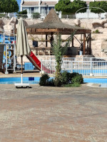 После обеда играют в волейбол на площадке у теплого бассейна. Он на верху детский. Внизу бар со спиртным.