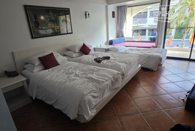 Номер большой, в номере 2 кресла и пуфик, в ванной достаточно крючков для полотенц, на балконе 2 стула, столик и достаточно большая сушилка, фен, мальенький сейф ( планшет не влезет) , кондей не дует на кровать. Если плохо закрыл дверь пищит сигнализация. Хорошая звукоизоляция, дорогу, соседей не слышно совсем, людей в бассейне тоже, первый раз в Тае не слышу соседей), выдают 2 ключа на смью, депозит 100$. Дополнительная кровать расчитана на рост до 165 см, у меня рост 168 и пальцы ног свисали с кровати.
