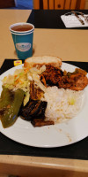 Но нам принесли железные миски с какой-то кашицей, сказали, салат, «жесть». Были голодные, «поклевали». Заказали напитки, нам принесли и дальше про нас забыли, сидели с пустыми стаканами. Наконец-то дождались мяса, подача «огонь», но мясо жёсткое, привкус барашка.