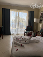 Номер: достаточно большая комната, ванна с функцией джакузи и окном в комнату была огромным плюсом номера, после холодного моря отогревалась в ней… под балконом большой бассейн, музыка играла с 10 до 16-00+-… в номере не сидела, поэтому особо не напрягало… пастель и белье вроде чисто, НО при заселении были везде черные волосы…