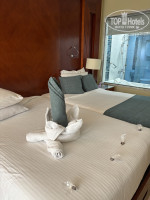 Заселение: была в отеле уже в 6-30 утра… номер был куплен сиавью…на ресепшен ни кого… шарахалась минут 15 одна…хотела доплатить за раннее заселение, сказал нет номеров, приходи в 10-00… пошла гулять до моря…вернувшись попросила за доплату переселить в 18 корпус… в этом корпусе номер оказался свободный есть… доплатила 70$ за 7 ночей… в номере была уже в 9-00… браслеты одевают после 10-00…