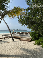 4. Территория. Океан. Территория красивая, ухоженная, Если в Вару чувствовалась новизна, молодая свежая зелень, деревья, кустарники, еще не всё выросло и укрепилось (в этом тоже есть свой шарм), то тут мне нравилось то, что наоборот остров обжитой, есть разнообразие растительного мира, много растений уже взрослых, вьются лианы, много цветов, красивых кустарников, живут летучие мыши, бегают игуаны, живут крабики, остров грамотно зонирован, хороший бар, отличное вино, приятная музыка, развлечений, правда, никаких, но они нам были и не нужны, мы приехали за тишиной и красотой. Ходили 1 раз в СПА, там очень красивая территория, брали расслабляющий массаж 90 минут, очень понравился, особенно ребенку. Единственный минус для меня - нет в продаже косметики, ни кремов, ни масок, ни тоников, шампуней и прочей мальдивской ароматной продукции , произведенной в Индии. Очень жаль, специально брала денег на косметику, она там отличная. Океан шикарен, красив как и везде на Мальдивах, самый лучший пляж у основного ресторана, там нет кораллов и вход по песочку, но нам не повезло с погодой, ветер был 17-34 м/с, иногда почти сносило и на этом месте купаться было практически невозможно. Поэтому мы купались у бара, вход хоть и с препятствиями в виде кораллов, но в целом сойдёт, особенно в прилив. Видели акул, скатов (они приплывали ближе к вечеру, прям под закат), кучу всякой живности.