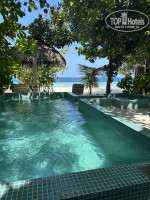3. Персонал. Услуги. Персонал - всё ненавязчиво. Никто тебе ничего не впаривает, захочешь потеряться и утонить - без проблем, о тебе даже никто не вспомнит, может ваш батлер, но только тогда, когда уже пора уезжать, никаких спасателей я не видела, вообще, чтобы кто-то тебя просто спросил как дела - вообще такого не было, а вход в океан - тот еще квест. Самый хороший пляж - это на территории основного ресторана, там действительно песок, люди его хвалили, особенно с детьми, но нам не повезло с погодой, был сильный ветер (от 17 до 34 м/с), волны были сильные и мы на этот пляж не попали. Купались на пляже у бара, сплошные мертвые кораллы, без аквасоков никуда, да и ними мы тоже умудрялись порезаться.