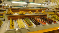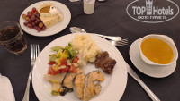 Питание на 5ку. Да, есть моменты, что к иностранцам относятся получше. Им могут налить воду в стакан, а русским в пластиковый стаканчик. Алкоголь не пробовала, тут не подскажу. Из мяса, баранина, говядина, курица, люля, рыба.Один раз давали красную рыбу на гриле, креветки. Выбор блюд большой. Выпечка, салаты, фрукты(финики,яблоки,груши,дыня,виноград, апельсины). На завтрак, стандарт, ничего особенного. Но мне кажется в сезон, будут очереди, но это наверное везде так.