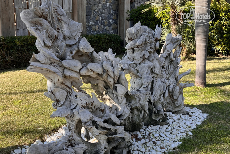 Территория отеля ухоженная, с продуманным ландшафтным дизайном. Она не огромная, но и не маленькая — достаточно места для прогулок и отдыха. Особенно запомнилась «дорожка здоровья» с разными покрытиями (камушки, трава и т.д.) отличное решение для стимуляции стоп.