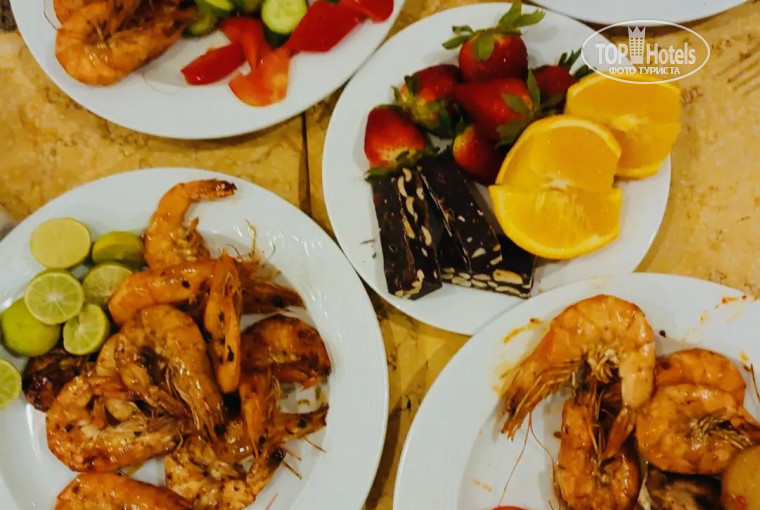 Отдыхали с подругами,прилетели в 6 часов,пока добрались до отеля было часов 8.Сразу предложили завтрак и сказали погулять.Часов в 11,нам дали номер 3230, с видом на море.Отдых удался.Ни в баре,ни в ресторане ни когда не было очередей.Много морепродуктов(крабы,кальмары,королевские креветки).Фруктов всегда достаточно и много виктории.Много пирожного всякого(незнаю по вкусу,не ем).Гости отеля 90% итальянцы.Так ,что пицца и паста всегда есть.