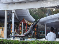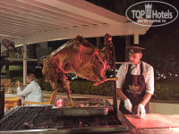 Теперь расскажу по питанию. Оно происходит в главном ресторане, есть открытая терраса. Там же постоянно пекут пиццу, закрытые лепешки с сыром, "лодочки" с мысом и сыром - все прямо с пылу-жару, очень вкусно. Каждый день жарят на гриле мясо, рыбу, морепродукты. За неделю 2 раза были королевские креветки, крабы. Два раза был жареный на вертеле баран. Раз жарили огромного черного марлина и другую рыбу помельче. Внутри ресторана есть стойка где можно взять запеченую рыбу, утку курицу, телятину. Всегда много было разной рыбы, часто прямо целиком зажареная довольно большая кефаль и что то еще, названий не знаю. Ну и как всегда много овощей, салатов, намазок, йогуртов, гарниров, пирожных.. всего не перечислить! А на завтраки всегда есть фреши манго, клубники, апельсина и гуавы! По алкоголю тоже все в порядке, выбор большой, делают очень вкусные коктейли. Я не любитель выпить, но каждый день пила вкусненький мохито и еще понравился фирменный коктейль Монте Карло! Пиво тоже хорошее. Официанты в ресторане отлично работают, грязные тарелки забирают мгновенно, с улыбками, еще и спасибо скажут! В плане питания Монте Карло опять же выигрывает у Риф оазиса!