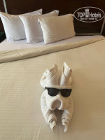 отель за 5 лет очень устал. номера убитые, дыра в шкафу, номер и мебель уставшие (как и постельное на фото видно, просто желтое) сейф так и не удалось использовать не работал. сообщили, но к нам так и никто не пришел. пульт от телика без крышки (ну и ладно)