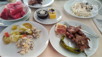 Merhaba arkadaşlar! Отдыхали в отеле в далёком 2020 году. Тогда, под занавес сезона отель переживал не самую лучшую свою форму. Было нас три взрослых девушки и ребёнок. По трансферу это был последний отель, поэтому дорога заняла чуть больше часа. Браслеты одели быстро, предложили пройти на завтрак. Номера как и везде предоставили в 14.00. На территории два корпуса - один основной, большой пятиэтажный и корпус поменьше у сцены для анимации. Есть три бассейна. Один большой спокойный, второй с ротондой и водопадом и горками. И третий бассейн у Анекс корпуса. Водная анимация присутствует. Так же у бассейнов есть снек бары с прохладительными напитками. Гезлеме и мороженое по расписанию. Питание вполне достойное, голодными не будете. Анимация детская есть. После - дискотека для взрослых. Пляж через дорогу, идти минут пять. Песчаный, в бухте с красивым видом на море и Чалыш. Здесь же парк Йорюк, набережная и порт.