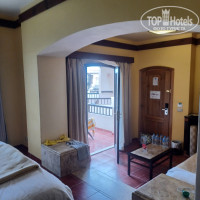 Так как был поздний отъезд накануне подошли на рецепшен продлить номер. Наш номер продлить было нельзя предложили другой, сказали - как будете готовы позвоните, перевезем ваши вещи. В 10 утра позвонили и переехали во 2 корпус номер 2410. Номер большой две комнаты, 2 этаж, большая терраса, вид на бассейн и боковой на море. Все принадлежности, включая пасты и зубные щётки присутствовали. Единственно в туалете и ванне нет дверей и душа отдельного нет. В предыдущем номере было гораздо комфортнее в этом плане. Рядом с номером бассейн и бар. Цена за продление 60 евро.