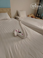 Заселение. Прилетели в 4 утра, доехали до отеля за пол часа общим трансфером. На ресепшене говорят - заселение в 14, за 50 долларов можем попробовать раньше. Посмотрел в компе, говорит номеров нет, даже за деньги. Потом говорит - в 8 встаёт уборщик, попрошу его убраться, в 9 заселим вас бесплатно. Но если хотите сделать подарок, то я не против. Дали ему те же 50 долларов, любим дарить подарки :) На ресепшене, и в принципе, многие понимают русский, проблем нет. В первый день даже написал в Гугл переводчике фразу по поводу того, где поменять доллары для чаевых, показал барменам на лобби. Они читали, читали, потом один говорит - спроси по русски, я не понимаю что тут написано:) заселили на первом этаже, дали третью раскладную кровать. На фото есть. Номер - жить можно. Косяки на фото отметил, нас не напрягало.