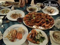 Персонал вежливый, стараются. Очень вкусно готовят пиццу на Марине. Вместо обеда в ресторане ходили туда брали еду с собой и кайфовали на пляже. Бар нормальный. Все напитки как обычно для Египта. Еда вкусная и разнообразная. На завтрак налегали на омлеты (можно было яичницу брать, но стоять в очереди не хотелось), греческий йогурт, фрукты. Кофе в кофемашинах очень даже зачётный. На ужин налегали на печень, супы-пюре, мясо, рыбу, овощи и фрукты. Жевали все-время что-то. Креветки и мидии в рыбном ресторане - ум отъешь!!!