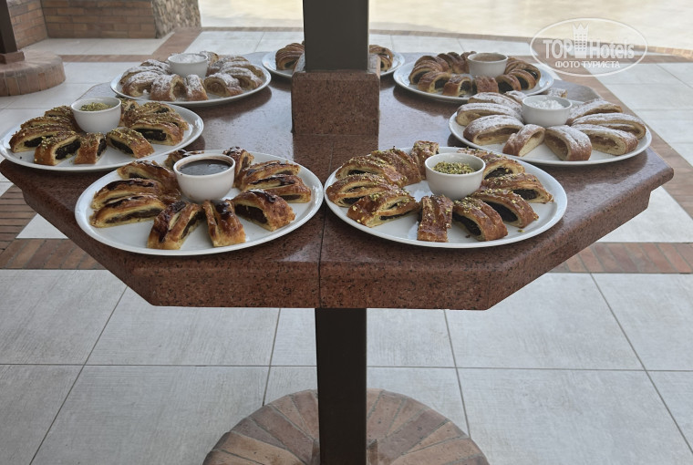Им кофе принесли,еду или омлет по желанию они ещё 2 евро,такая же ситуация и с булочками.На обеде тоже самое,но а ужин сам бог велел.