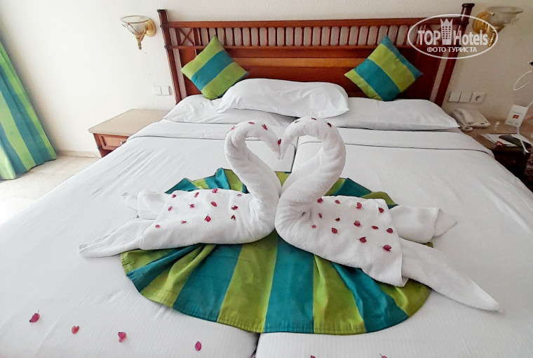 Номер просторный, всё работало. При заселении в номере нет халатов и тапочек, их надо просить на ресепшене. Мы сразу сказали менеджеру по работе с гостями-вскоре их принесли в номер. В номере нет ни ватных дисков, ни ватных палочек. В минибаре, он же холодильник, только вода. В номере есть всё для чая и кофе. По запросу в номер бесплатно принесли утюг с гладильной доской. Номер оказался не очень удачный. Первый этаж, на центральной аллее. Окно на ночь не открыть, до 2-х ночи и с 6 утра слышны звуки проезжающих электрокаров и разговоры мимо идущих людей. У отеля хорошее расположение - в центре Наама, вокруг много магазинов, 2 фикспрайса, где продается все то, что на рынке, только в разы дешевле. Очень понравилась территория - красивая, ухоженная. По отелю курсируют эдектрокары, на которых можно добраться в любую точку отеля. На ресепшене есть банкомат, в котором можно поменять доллары (рубли не принимают) на египетские фунты. В фикспрайсах оплата только фунтами.