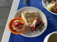 Еда в ресторане отличная: мясо, рыба, овощи печеные или свежие. Можно самим собрать салаты, есть сыры, колбасы, оливки и еще куча-куча всего. Есть разнообразие десертов, выпечки: лепешки, булочки. На пляже тоже есть ресторан, он работает с обеда: там можно собрать бургеры, шаурму, взять пиццу, рыбу и тд. Днем еще дают мороженое. Кстати, оно вкусное. Брать тоже можно безлимитно. В целом еда правда отличная. Очереди большие, как и везде. Не знаю таких отелей, где нет очередей в ресторанах. Тут проблема именно, что люди "медитируют" стоят, а не в отеле. Короче говоря, человек с любыми вкусовыми предпочтениями найдет для себя что-то вкусное: пусть вы любитель фастфуда или веган.
