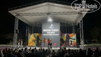 Сцена стоит недалеко у пляжа. Я считаю, что это огромный плюс: громкая музыка не орет под окнами номеров. Соответственно, кто хочет - спокойно отдыхает, а кто хочет - идет развлекаться. Анимации каждый день, девушки устраивают аквааэробику по утрам. Музыка у бассейнов играет.