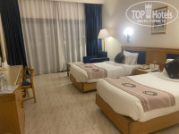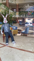 В отеле встретили замечательно, все очень дружелюбные и гостепреимные , здороваются, стараются сказать что-то приятное, помочь. Часто спрашивают: все хорошо? Все окей? Отель с большой территорией, утопающей в зелени. все ухоженно, кустарники, газоны пострижены. Шесть вечеров и днем гуляли по территории, разглядывали, насхлаждались. Озеро в центре с фонтаном и великолепными пальмами вокруг просто жемчужина. Бассейны чистые, большие, с декоративной рекой по периметру, красиво. в одном есть горки для деток. Бассейны работают до 17.00 Полотенце пляжное большое длинное, широкое. На дорожках ближе к морю , на парапете в центре отеля, не мыли давно птичьи помет. Плитка по территории местами осыпалась, скололась, только не понятно, почему ее не сметают? Так местами крошка лежит не тронутая. Не приятно и босиком не пройти(. В последний день видели на пляже меняли несколько столиков под зонтиками. Лежаки деревянные, меня устраивают, только давно не крашеные, освежить бы. Матрасы не мытые давно. /// Отелю 29 лет. Номер хороший,443, дальний корпус, все чисто, и уборка была нормальная. мебель «уставшая» но очень крепкая , не сломано , все работает исправно. Потолки высокие. Шторы пышные, в один цвет с креслом, и изголовьем кровати. Кружок на унитазе добротный. Забыла впервые зубную щетку, спросила- принесли добротную, вид на 1 корпус, под окном работают очень шумные то ли вытяжки, механизмы, со скрипом. Под утро открывали дверь балкона. /// Есть а-ля карт, нужно записываться за сутки. /// Туалеты в 4 местах на пляже. Здесь, в этом районе мелководье. Отливы по 2 раза в сутки. Это стало новостью. Купаться с пирса. полежать в прибое на берегу на песочке не получилось с 3 по 8 апреля. На берег активно выбрасывались медузы. От ветра заграждения возле каждого зонтика. Песок плотный, ходить босиком по нему сложно. Дорожка деревянная не подметалась, на нее налип песок черный, выглядит, как земля… шлифанули бы шлиф машиной… От главного корпуса возит BUS до пляжа. Мы ходили пешком. В отеле есть открытый теплый бассейн. приличный спортзал с дружелюбным тренером. /// Курица, была утка, баранина, говядина, рыба, индейка, овощи, гарниры, рис, паста , картофель. Из фруктов- очень сладкие бананы ,апельсины ,финики, дыня, яблоко, мандарин, гуава. Зелени пучком и порезанной около супа нет совсем. Салат всегда один огурец, помидор, пекинка, зелень. Вторник, официанты в красивой форме морской, давали креветки на гриле. Понедельник на ужин на улице вафли с мороженым. На пляже при тебе с 15.30 готовят пиццу. Чисто, все время моют ,трут, все приборы и везде проходят термообработку в автоклавах./// Инет почти везде, иногда вылетает. /// Азиатский. Мы опоздали минут на 20, ждали 30, принесли сначала суп( вода с соевым соусом, пара Грибов) не доели. Мясной с луком и перцем свежим салат, Суши нам так и не дали. Горячее говядина на сковороде с овощами вкусно, ужин проходит на балкончике над рецепцинй с панорамным видом на отель. Ценность- спокойная обстановка, обслужили. Итальянский ресторан. Салат капрезе, не пожалели сыра. Пицца с тунцом, много лука относительно, брала не я, и съела только кусок. Паста карбонара, колбаса не супер, но вкусно. Наелись, а впереди еще горячее… /// Анимация. Зарядка на пляже в 10,30 и танцевальное что-то в 12, проводил толи нанятый тренер для анимации, потому что потом его не было, проводили девочки, из бе