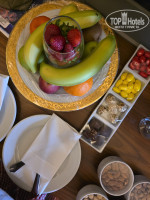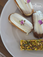 Питание прям скудное,возмодно это в апреле так сжата концепция, но сомневаюсь. Смотрела обзоры на ютьюбе осенние не изменилось ничего в апреле. Рыба - морской язык и дорадо, из гриля куриная грудка, кебаб из баранины, курица или перепела на вертеле, овощи по стандарту, много зелени стандартной,нет авакадо ни утром, ни вечером. Фрукты скудные - яблоко, груша, апельсин, мандарин, банан - на этом все😪 можно было хотя-бы гранат и киви добавить. На мой взгляд такая же беда с десертами. Но я нашла для себя один и всю неделю только его)