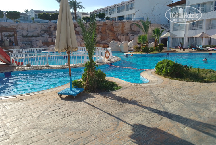 Бронировали отель самостоятельно 4000 руб (50$) за двоих в сутки по системе всё включено поехали ради эксперимента т.к. уж больно привлекательная бывает на этот отель цена и всё оказалось вполне ок. Кормят очень даже хорошо мясо, рыба постоянно присутствует, гарниры салаты за уши, на ужин постоянно что-то жарят на гриле, спиртное без ограничения только в мелкие пластиковые минзурки, пляж палма 2.5 км в конце улицы Эль фанар возит автобус примерно каждый час туда и обратно первый автобус с утра битком лучше на такси или пешком, или на следующем, на пляже бар от отеля кола, фанта, спрайт, чай, кофе с 10 до 16 без ограничения. Номера практически все без балкона но окно огромное в пол. Очень много народу в ресторане во время кормления большая суета но места всем хватает но это особенность больших отелей, персонал очень вежливый и внимательный. Вылет из шарма был в 23.15 продлили до 19.30 с обедом и ужином за 30 долларов. За 10 долларов предоставили авто в аэропорт. В общем за такую цену Отель можно рассматривать для отдыха это наше личное мнение, всем приятного отдыха.