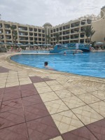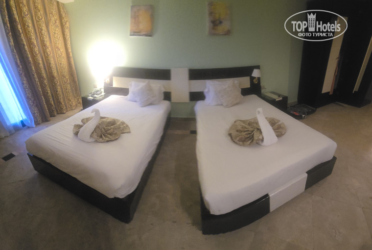 ИТАК: отель со средней по площади территорией, есть номера после ремонта, они хорошие, но по отзывам отдыхающих есть совсем убитые номера. Лучше сразу брать с видом на море ( эти номера как правило после ремонта). Приехали в 6 утра- заселили нам в 11 часов ( по правилам в 14-00). Завтрак не предложили, он не положен,в первый день мы пообедали, тогда в последний обед не положен- браслеты срезают ( по мне так странно, неужели отель не может покормить своих гостей ,если у них поздний вылет... мелочь, но неприятно). На рецепшене все довольно любезны, но там стоит удушающий запах восточного аромата . Еда- бывает оооочень вкусно (например - запеченая индейка , очень вкусная попадалась говядина, какое то блюдо с морепродуктами в основном кальмары там.), бывает прямо скажем не съедобно , на мой взгляд рыба была неудачная почти всегда.., но ребенок мой 12 лет - прямо скажем не едок ,находил себе еду всегда. Голодными не будете, всегда можно найти покушать. По очередям в часы пик они есть но стоит прийти чуть позже- еду докладывают и очередей нет. Очереди ак в бары так и в столовой только в часы ПИК- которые создают сами отдыхающие. алкоголь - ВИНО сухое белое и красное- довольно приличное ( в руки не более2х бакалов и это нормально), ром, виски, водка, текила, джин, пиво. Детям странные напитки типо ююппи.. как всегда впрочем ну и спрайт, кола, на территории продают фрэши по 3-4 доллара. Мороженное тоже только платное, в этом отеле не было бесплатного мороженного ( чисто для информации) нам оно не нужно было. Пляж- как и везде лежаки надо занимать с утра , иначе можешь остаться без него, есть платные шатры на весь день 10 долларов. Заход с одного бока прямо хороший, с другого каменистый, море прекрасно!!! Есть откуда попрыгать ! ДА на пляже есть стоянка для корабликов, нам не мешало . Территория средних размеров- ухоженная. Мебель по территории - диванчики ,столики подушатанные- но в принципе норм. анимация- не навязчивая, да особо ее и нет. Вечернее шоу не замысловатые, самые простенькие )) в 21 начинаются до 22-00 , а 22 по 23-00 - типо дискотека. Хорошо что есть где потанцевать, с музыкой правда беда ))) НАМ не зашла, но в принципе при хорошем настрое, можно попрыгать .В общем сказать что ВАУ не могу, но довольно не плохо. За эти деньги, даже хорошо ( из СПБ на 10 дней на 1 взрос+ 1 ребенок 11 лет - 157тыс. номер с видом на море ( это апрель, погода наладилась в этом году с 05 апреля , с 1 по 4 было ветрено и облачно). До центра не далеко пешком минут 20, на такси за 1, 2 доллара - 5 минут . Многие отмечают что отношение к русским, хуже чем к другим, я не заметила, давайте чаевые и 10-15 долларов за весь отпуск - сделает ВАМ его гораздо приятнее. Наблюдала как русские женщины очень некрасиво, делали замечания в ресторане/ столовой с понтом, фамильярно.. просто богини..., да не всегда успевают убрать, но очень стараются. Есть на территории итальянский ресторан, который можно посетить как правило 1 раз за отпуск, там чисто ,красиво, и еда очень вкусная- рекомендую, обязательно записывайтесь . ЕСТЬ 4 аква горки, сама каталась с удовольствием не убитые , хорошие., детская зона с горочками для малышей тоже очень удачная, только в зоне аквапарка нет лежаков, надо бы поставить их туда для родителец.С ХОРОШЕЙ компанией будет весело !!!!