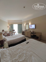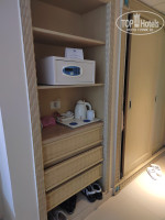 В номере не новая мебель, но все чисто. Удобные кровати, холодильник, телевизор, диван, стол, стулья, тумбочки, шкаф. В ванной есть встроенный фен, увеличительное зеркало. При заезде есть шампуни и гели для душа. Нам выдали по запросу халаты и тапочки. Уборка каждый день .