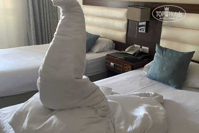 Отдыхали с мужем в номере 6469. Приехали часов в 11, нас оформили, но заселили ближе к 14 часам. За это время мы освоились, прошлись по территории, покушали, поэтому никакого напряжения не было. Все очень понравилось для данной категории отеля. И размещение, и питание оооочень разнообразное, и уборка номера, и шикарная территория, и отношение персонала. Стараются говорить на русском, отзывчивы и внимательны. Никакой навязчивости. Лежаков достаточно как возле отеля, так и на пляже, при том различной модификации). На пляже есть свой бар с напитками. Отличный вход в море. Не буду рассуждать об анимации, мы отдыхали без детей, чаще были на пляже. Но видели, что аниматоры работали, особенно с детками. Очень приятно, что утром всегда был свежевыжатый сок, большой выбор выпечки. Как я уже и говорила, трудно остаться недовольным питанием в данном отеле. И что касается территории, то можно пользоваться инфраструктурой трех отелей, что очень удобно, выбор ресторанов, бассейнов, лежаков, просто погулять и др. И еще хочу отметить, что персонал серьезно относится к безопасности отдыхающих, как на территории отеля, так и на территории пляжа. Благодарим персонал отеля за прекрасный отдых. Будем рекомендовать данный отель).
