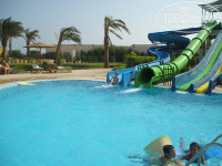 Начну с начала: Приехали в отель поздно, уже почти в полночь, разместили сразу же и еще покормили. Номера небольшие, но чистые и уютные. Во всех номерах балконы а на первом этаже террасы. Территория отеля великолепная, много зелени, все чисто и ухоженно, много бассейнов, даже есть горки. пляж не плохой, единственный минус то что очень мелко, до глубины надо идти. Питание отличное и разнообразное. Кормили просто на убой. Много овощей, фруктов, всевозможной выпечки, сладостей. Мяса, рыба, курица были каждый день на обед и на ужин, но блюда из них никогда не повторялись. Для тех кто не хотел идти обедать в столовую, можно было поесть на пляже, меню конечно не такое разнообразное как в большой столовой, но голодным ни кто не уходил. Так же были супчики. С 16:00 до 17:00 каждый день на пляже было мороженное и всяческие закуски. Персонал вежливый и улыбчивый. Вечером были дискотеки, но мы на них не ходили, мы каждый вечер езди в Хургаду. Единственный минус для меня был по расположению отеля, то что далековато от города. Правда от отеля каждый день туда ходил автобус, но время меня не устраивала, поэтому мы брали таки. Таксисты заламывают цену не меньше 10 баксов, торгуйтесь, дороже чем за 5 мы не ездили, а если они начинала выступать, я говорила в включайте таксометр, по таксометру получается 18 фунтов их денег, на доллары приблизительно 3 доллара. По поводу анимации: меня это не особенно интересовала, но развлекали они народ от души. Был и пляжный волейбол, и аква аэробика, и танцы, и дискотеки, и развлечения для детей и еще там куча всяческих игр. Короче все очень понравилось. Советую посетить этот отель. Он очень хорошо подходит для семейного отдыха.
