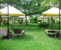 Про пляж: есть зона отдыха на газонной траве (см фото), есть шезлонги на песочке - ближе к морю.