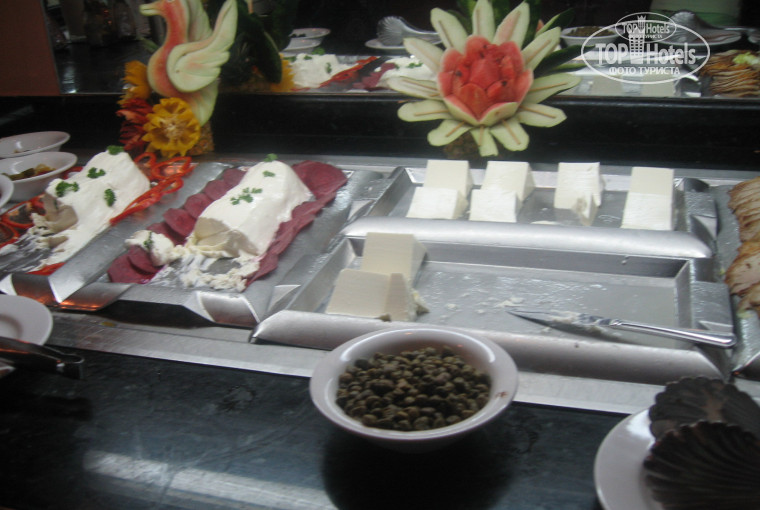 Тематические рестораны. Ходили только в мексиканский и в японский. Не ахти, лучше в основном поесть. Но для проформы надо. При вселении, в конверте должны положить купон, на котором написаны сверху 4 ресторана. Нет никакой записи. Приходити. Показываете купон, администратор прокалывает около того ресторана квадратик на купоне, в который пришли. Один раз в каждый ресторан за заезд. Если Вам не дали этот купон, можно попросить на ресепшене или у Ларисы. В японском ресторане при вас повар готовит рис, мясо. Рис вкусный, мясо не дожаренное. Вино бесплатно. Но если хотите, что – то хорошее, там есть винная карта – уже за деньги. Когда поедите, необходимо похлопать повару. А дальше идете в другую комнату и кушаете десерт, но чай нам никто не предложил. В итальянском много отравлений. Лучше не ходить. А в американский не ходили, т.к. фаст фуда можно покушать около бассейна. Около бассейна хорошая пицца.
