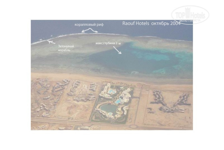 Возможно, что до рифа уже построен понтон. Если нет, то можно воспользоваться понтонами соседних отелей 500 м влево или вправо. В 2 км влево (лицом к морю) был дикий пляж. Идеальный песок и риф у самого берега с гротами и пещерами. Возможно, сейчас освоен.