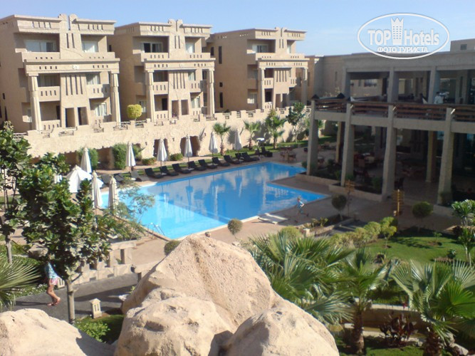 Рестораны, бары: - уютный главный ресторан Hatshepsut с приятной атмосферой, в меню блюда международной кухни; -> Кормили на убой, я же говорю потолстели килограмма на 3 минимум, есть конечно кое что на любителя, на очень большого любителя, но через пару дней уже сам знаешь что брать а что не надо:). - стильный бар Philae в холле отеля с удобной мягкой мебелью, предлагает большой выбор различных напитков, коктейлей и легких закусок -> ну закусок в этом баре я не видел, а вот коктейли были, и очень даже неплохие, правда лучше просить коктейль у бармена такого невысокого, ушастенького, вечно шутящего и улыбающегося, Фати его зовут, подружились с ним (после того как ему водки русской подарил бутылку), наливал нам самые вкусные коктейли, а главное быстро.