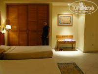 1. Размещение - 5. По путевке мы должны были размещатся в Дюнах (далеко от моря, хотя постоянно курсируют паровозики). Мы доплатили 20$ за номер и нас разместили в домике в Лагуне, было близко и к морю и центральному зданию. Номер очень понравился - просторный, две полутороспальные кровати, шкаф-купе, комод, тумбочки, зеркало в полный рост, холодильник, кондиционер. Очень удобные ортопедические матрасы, спал как дома :). Есть большая терасса, на ней два стула и столик из ротанга (вечерком приятно посидеть и поиграть в карты), на терассе у нас проживала маленькая ящерица (смотрите на фото). Единственный минус это запах при поливки расстений, реально воняет. Территория отеля очень большая, много растительности (рядом с домом рос гранат :)). Пляж - просто супер! Сочетается песчанный пляж и наличие кораллов недалеко и неглубоко от берега. И обязательно сплавайте посмотреть на кораллы и рыбешек в море у пляжа, захватите булочку чтобы покормить рыбок. СОВЕТ: лучше все-таки доплатить 20$ за размещение, и торгуйтесь можно и подешле договориться :)