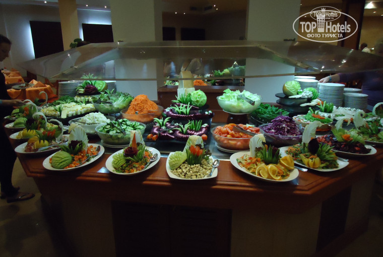 Питание очень понравилось, ну и что, что не было арбузов и клубники, масса разнообразной выпечки, салаты на любой вкус, вкусные супчики, блинчики, мороженое, ну, в общем, ели до отвала. Иногда правда в ресторане свободные столики приходилось подолгу ждать, второй зал почему то закрыт был, а на улице прохладно ужинать вечером.