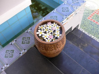 Для Вьетнама очень большая и ухоженная территория . В номерах убираются каждый день . Есть только один маленький недостаток ( а может быть и достоинство - кому как ) - очень далеко до ресторанов и кафешек . Но если вы не боитесь ездить на мотобайке - проблем с питанием не возникнет . Байк можно взять на прокат прямо напротив отеля за 10 $ в сутки + ваш бензин (около 1 $ за литр ) . В этом случае можно каждый раз питаться в разных ресторанах и быть свободным в своих перемещениях ( главное шлем одевать ) . Если боитесь - можно взять такси или даже велосипед . Есть ресторан и в отеле , но там дороже и выбора меньше . Завтраки в ресторане отеля очень приличные ( довольно большой выбор блюд ). Персонал очень вежливый и приветливый (впрочем как и все вьтнамцы ). Пляж ухоженный и много лежаков . Ни разу все лежаки не были заняты , всегда много свободных , как на пляже , так и у бассейна .